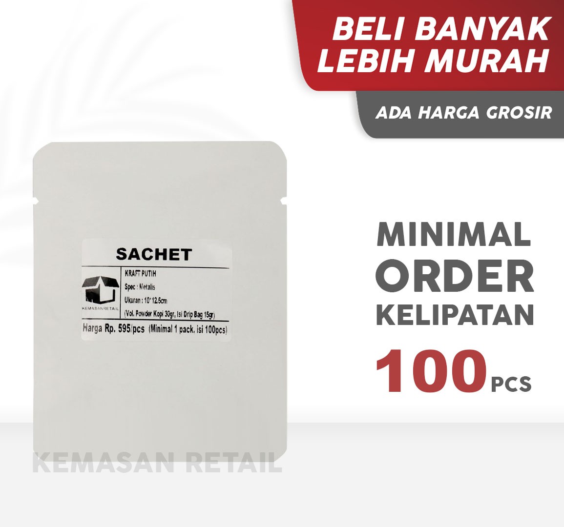 "MOHON DI PERHATIKAN:Minimum order: Kelipatan 100 pcsKemasan Flat/Sachet/Saset ini terbuat dari bahan metalis , kemasan ini jugacocok untuk produk seperti kopi bubuk, teh, susu bubuk, dan semacamnya.Spesifikasi Produk :Jenis : SacheWarna : Putih KraftUkuran: 10x12.5cmHarga : Rp. 59.500/packIsi : 100pcs/packNote:- Barang yang sudah di beli tidak dapat di kembalikan atau ditukar. Mohon untukdi pastikan ukuran yang anda pilih.Terima kasih telah berbelanja di toko kami.
