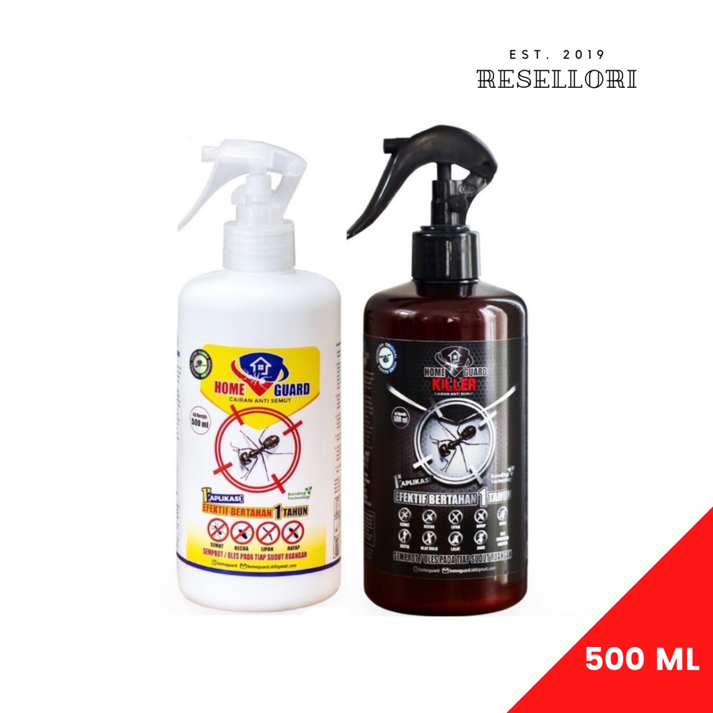Kami merupakan reseller resmi Homeguard di Tangerang✔️ Original 100%✔️ Ready StockAda 3 ukuran : 100 ML, 250 ML, 500 MLHalaman ini adalah Homeguard ukuran 500 MLApa itu Homeguard?Home Guard adalah cairan anti semut, rayap, kecoa, ulat, lipan, dan segala jenis serangga merayap dalam kemasan spray yang sangat efektif untuk mencegah masuknya segala jenis serangga merayap ke dalam ruangan. Bahan aktif Home Guard melekat pada area yang disemprot dan bertahan hingga 1 tahun.Cairan yang disemprotkan akan segera menguap, serangga yang bersentuhann dengan benda padat tersebut akan merasa tidak nyaman karena akumulasi kontak. Koloni mereka tidak kembali untuk jangka waktu 1 tahun. Cairan ini berbahan dasar air, jadi aman untuk penggunaan (Tidak membekas pada furniture.Kelebihan Home Guard :+ Mudah sekali diaplikasikan+ Satu kali aplikasi efektif hingga 1 tahun+ Tidak meninggalkan noda apapun, baik pada furniture maupun keramik, marmer, granit, kayu+ Aman bagi anak-anak, ibu hamil, maupun hewan peliharaan+ Tidak berbau+ Ramah lingkungan+ Harga ekonomis+ Dikemas dalam botol spray sehingga praktis dalam penggunaanCara pemakaian :1. Bersihkan ruangan yang hendak disemprot dengan Home Guard2. Semprot Home Guard di sudut pertemuan dinding dan lantai sekeliling ruangan, juga di keliling kusen pintu dan jendela.3. Menutup semua jalur lewat serangga merayap ke dalam ruangan4. Diamkan selama 4 jam agar Home Guard bekerja dengan maksimal. Setelah 4 jam boleh dibersihkan5. Untuk area yang sudah ada banyak rayap/semut/serangga lainnya, penyemprotan harus merata di area tersebut6. Untuk meja, cukup semprotkan di kaki-kaki mejanya saja7. Untuk area basah seperti kamar mandi, pada saat penyemprotan harus dalam keadaan kering dan didiamkan selama 4 jam8. Satu kali aplikasi bertahan hingga 1 tahun#Homeguardtang