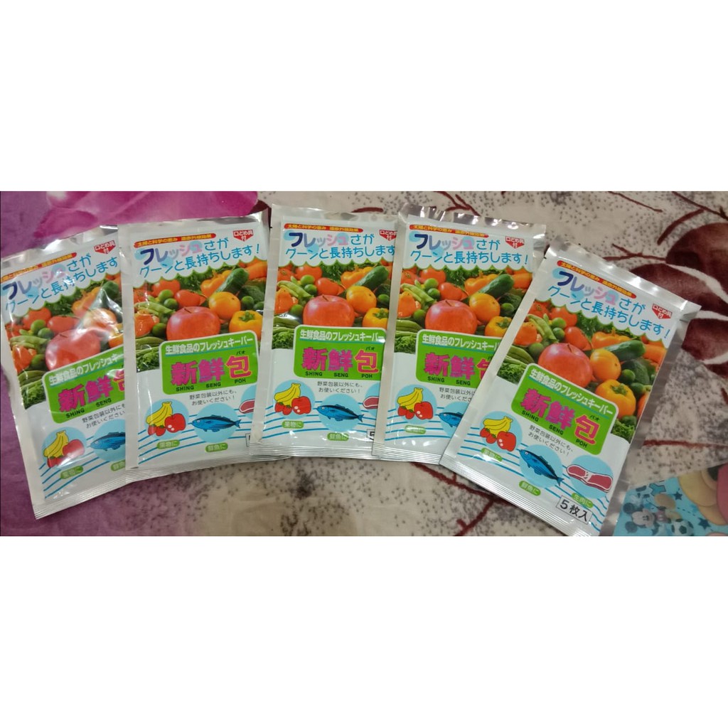 Plastik Shing Seng Poh ini digunakan untuk menyimpan sayur dan buah-buahan agar tetap segar, tidak mudah busuk dan tahan lama.Kelebihan Shing Seng Poh:- dapat menyerap gas ethylene dan hormon pembusukan sehingga makanan bisa tetap segar dan tahan lama- dapat menjaga kandungan air dalam makanan- membuat butiran uap air tidak mudah menempel, sehingga jamur tidak mudah tumbuh dan berkembangCara pakai:Masukkan sayuran, buah-buahan maupun daging ke dalam plastik Shing Seng Poh ini, kemudian simpan di lemari pendingin.Plastik ini bisa digunakan berulang (selama plastik tidak sobek). Caranya dicuci bersih menggunakan sabun & spons.1 Pack isi