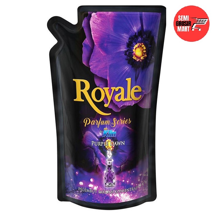 So Klin Royale Pelembut & Pewangi Purple Dawn Refill 800ml so Klin RoyalePelembut & Pewangi Purple Dawn Refill 800ml merupakan pelembut pakaian yanghadir dengan aroma berkelas. Formula khususnya mampu melembutkan pakaian sepertiselembut sutra. so Klin Royale Purple Dawn akan memberikan keharuman yang lembutdari red fruit, violet, fruty vanilla, rose, dan lily. Berpadu dengan wangivanilla, amber, musk, dan cedarwood yang spesial. Memberikan kenyamanan maksimalsaat mengenakan pakaian sehari-hari. Dalam kemasan refill 800ml yang praktis.Netto