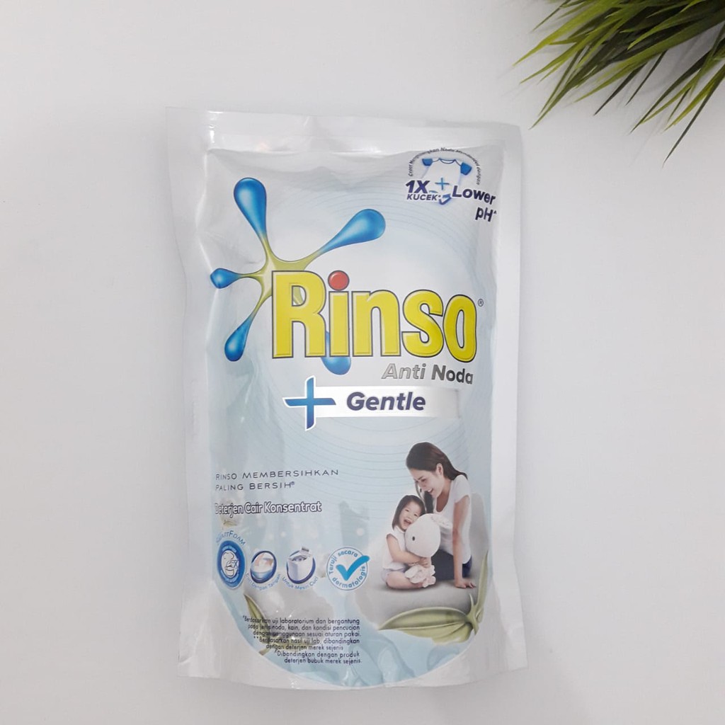Menghilangkan noda membandel dan cocok untuk baju bayi.Rinso Gentle baru, menghilangkan noda membandel, didesain khusus dengan formulasi pH yang lebih rendah dan teruji secara dermatologis7 Keuntungan Rinso Gentle Cair:1. Cairan masuk keserat kain terdalam, tidak meninggalkan residu2. Membersihkan noda lebih cepat hanya 1 kali kucek3. Teknologi smartfoam baru menghemat hingga setengah air bilasan4. Menjaga warna pakaian tetap cemerlang5. Lembut ditangan6. Formulasi yang ramah lingkungan7. Didesain khusus dengan formulasi pH yang lebih rendah.1 tutup, cukup untuk 1 kali cuci Note:Tambahkan kardus dan bubble wrap untuk keamanan pada saat proses pengiriman.Seller tdk bertanggung jawab atas paket yg tidak dilapisi kardus dan bubble wrap.Berikut link bubble wrap: https://shopee.co.id/product/186873618/357883