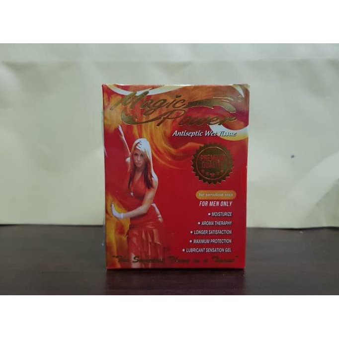 Barang selalu ready ya kak yaMagic Power Antiseptic Wet TissueMAGIC POWER CRIMSON DESIRE (MERAH)1 box isi 6 sachetEXP PANJANG 2024Komposisi: Alkohol, Benzalkonium Chlorida, Triclosan, Cocomidopropyl, Betaine, PEG-78, Glyceryl Cocoate, Purified WaterKEGUNAAN:- Menyegarkan dan membersihkan kulit anda- Membuat kulit terasa lebih lembut- Mengandung aroma khas yang romantis- Meningkatkan stamina dalam hubungan intim- Mencegah 3jakul4si din1CARA PEMAKAIAN:Usapkan secara merata tissue basah antiseptic Magic Power pada alat vital Anda yang telah 3Rek5i saat hendak melakukan hubungan intim, Diamkan selama 3-10 menit.Pemakaian Hanya untuk sekali Saja. Hanya untuk pemakaian luar. Jauhkan Dari jangkauan anak-anak.PERINGATAN:Jika penggunaan tissue menyebabkan reaksi yang tidak nyaman pada kulit yang sensitif, segera bilas dengan air bersih.Jangan tertipu dengan barang palsu, Kualitas barang sangat penting untuk anda sebagai konsumen.Diproduksi Oleh: PT. ETICA SARI PRATAMATANGERANG - INDONESIAIZIN Belanjalah tanpa rasa khawatir, kami tidak akan mencantumkan informasi produk pada paket karena kami selalu menghargai privasi para pem
