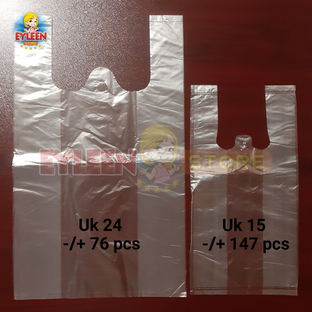Kantong Plastik Kresek BeningBiasa digunakan untuk kantong makanan, sayur dan lainnyaTersedia ukuran :Uk 15 -/+ 147 pcs, 288grUk 24 -/+ 76 pcs, 293grHarap memilih variant yang diinginkan atau tulis di noteUntuk kebutuhan kantong plastik lainnya, silahkan cek etalase kami :Terima Kasih ^_^terima