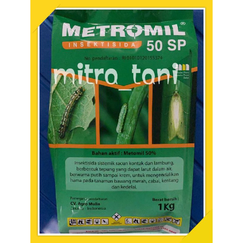 Metromil 50SP merupakan Insektisida racun kontak dan lambung yang sangat efektif untuk mengendalikan hama ulat pada berbagai tanaman seperti, cabai, tomat, padi, jagung, dll. Dengan bahan aktif metomil kandungan sangat tinggi yaitu 50% metromil sangat efektif untuk memberantas hama ulat hingga telur/larva yang masih baru tidak dapat menetas/mati, selain itu juga dengan daya kemampuan translaminar yang dapat menembus jaringan tanaman metromil sangat efektif membunuh hama dalam batang atau yang bersembunyi di balik daun. Berat bersih: 1000 gram Bahan aktif: metomil (methomyl) : 50 % Insektisida racun kontak dan lambung berbentuk tepung yang dapat larut dalam