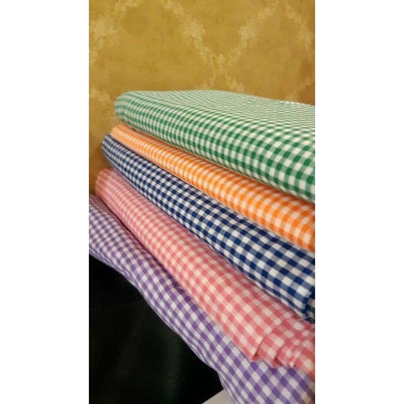 Kami menjual kain berbahan polyester pe kotak kecil atau ukuran 1 cmBahan adem dan tidak kasar , cocok untuk pembuatan kameja,Tikar,taplak meja,sprei bantal sofa dll.*NOTED Harga diatas per setengah meter/0,5 MeterJika ingin pesan 1 Meter klik 2 kali begitupun seter