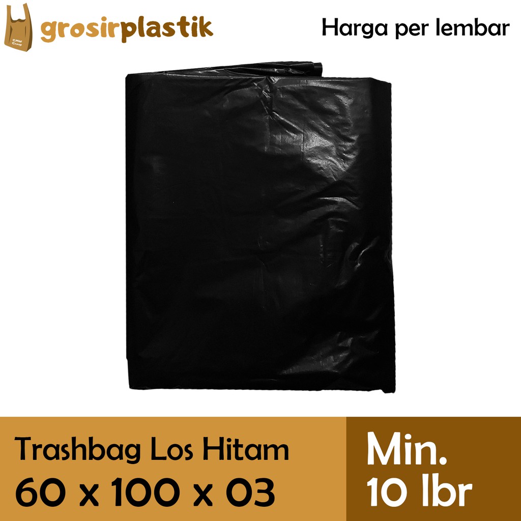 *Harga PER LEMBAR, Bukan Harga Per Pack Atau Per Ikat.*Harga PER LEMBAR, Bukan Harga Per Pack Atau Per Ikat.Minimal pembelian 10 lembar (1 bendel = 10 lembar), berlaku kelipatan (misal pembelian 2 bendel = 20 lembar)*Barang READY STOCK, Silakan Langsung Diorder.*Bukan Reseller / Dropshipper.*Bisa COD / GOJEK / GRAB Via Marketplace.*GOJEK / GRAB: Sebelum Jam 16 (Senin-Jumat) Dan Sebelum Jam 15 (Sabtu) Langsung Kirim Hari Sama.*Pengiriman Ekspedisi Setiap Hari Ada (KECUALI Minggu/Tgl Merah)*TERSEDIA PENGIRIMAN VIA CARGO (Hubungi Kami)Merk: tanpa merkPanjang: 100 cmLebar: 60 cmKetebalan: 03Warna: HitamIsi per bendel: 10 lembar*Tersedia harga khusus Grosir dan Bal/Karung.*Tersedia Warna / Ukuran / Ketebalan / Merk Kantong Plastik Kresek lainnya di etalase toko kami.*Jadwal Pengiriman dan Ekspedisi ""Instant/Same Day Delivery"" dapat dilihat di Catatan Toko.Untuk keterangan lebih lanjut dapat menghubungi kami.#GrosirPlastik #Sunrise #TasKresek #Trashbag #Grosir #Kantong #Kresek #Plastik #