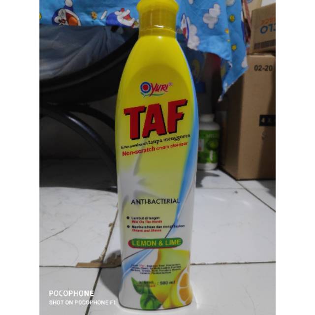 Yuri Taf Antibacterial Kemasan 500 MLFormulasi Krim Pembersih Membersihkan Hampir Segala Permukaan.Untuk Membersihkan Stainless Steel, Alumunium, Chrome, Terrazo, Vynil, Porcelain, Mosaic, Ceramic, Painted Surface Varian Lemon & Lime Produk Asli Yuri